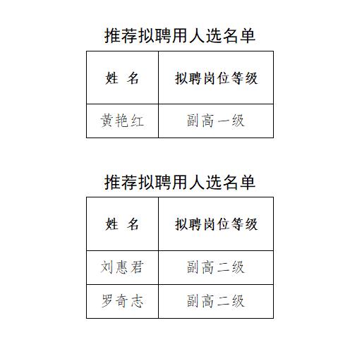 根据《关于组织开展我校2025年专业技术岗位分级聘用工作的通知》要求,经个人申报、H动漫资格预审、校资实处资格复审后,通过H动漫教授委员会评议、学校实验系列岗位聘用工作小组评审,推荐以下人员聘到实验系列相应岗位。现将名单予以公示。