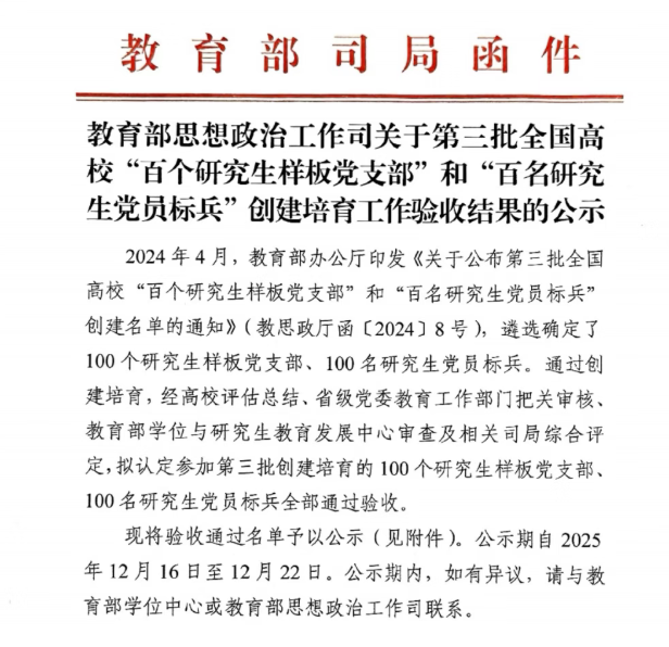喜报!我院研究生第三党支部顺利通过教育部第三批全国高校“百个研究生样板党支部"创建培育验收