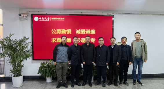 2025年12月25日,湖南省司法厅公共法律服务管理处处长吴兆宏、副处长蒋泞鸿,湖南省司法鉴定协会秘书长章大峰一行三人莅临我院调研。H动漫党委书记王慷慨、副院长郭亚东、鉴定中心法定代表人(H动漫原党委书记)李顺长及法医学系主任扎拉嘎白乙拉共同参加了本次交流活动。